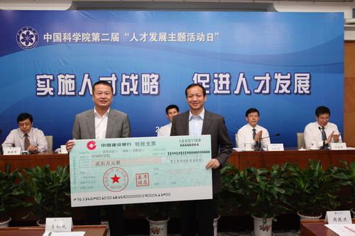 人才发展主题活动日上,詹文龙副院长系统介绍了中科院近期人才工作的最新进展及相关政策举措,举行了中国科学院“海外评审专家”聘请仪式,有6位海外杰出人才代表受聘;一批优秀人才受到了集中表彰,其中,10位40岁以下青年学者获中国科学院青年科学家奖,50位35岁以下青年学者获中国科学院卢嘉锡青年人才奖,10位高级技能人才被授予中国科学院技术能手荣誉称号。在活动日中,还举行《人才强院》图书的发行仪式。同时,还举行了力高集团(香港)有限公向中国科学院的捐赠仪式,所捐资金由于支持中国科学院吸引和支持杰出的科技人才。